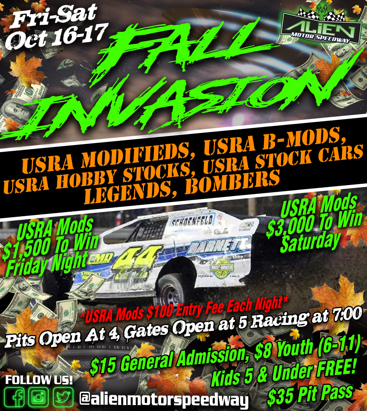 USRA Modifieds $1,500 to win Friday and Saturday, $5,000 to win Sunday!