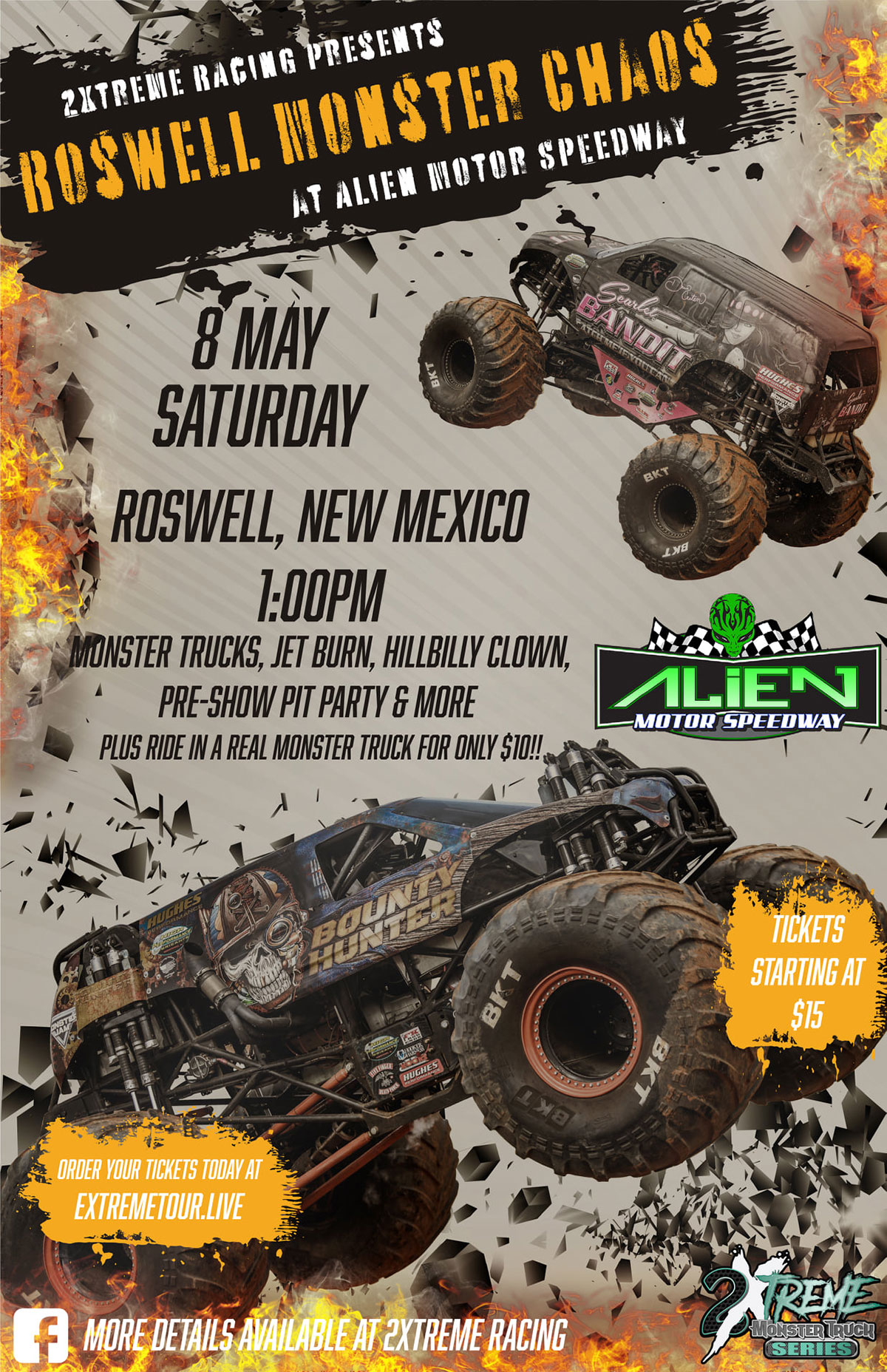 For the FIRST TIME EVER, 2Xtreme Racing presents Roswell Monster Truck Chaos 2021!